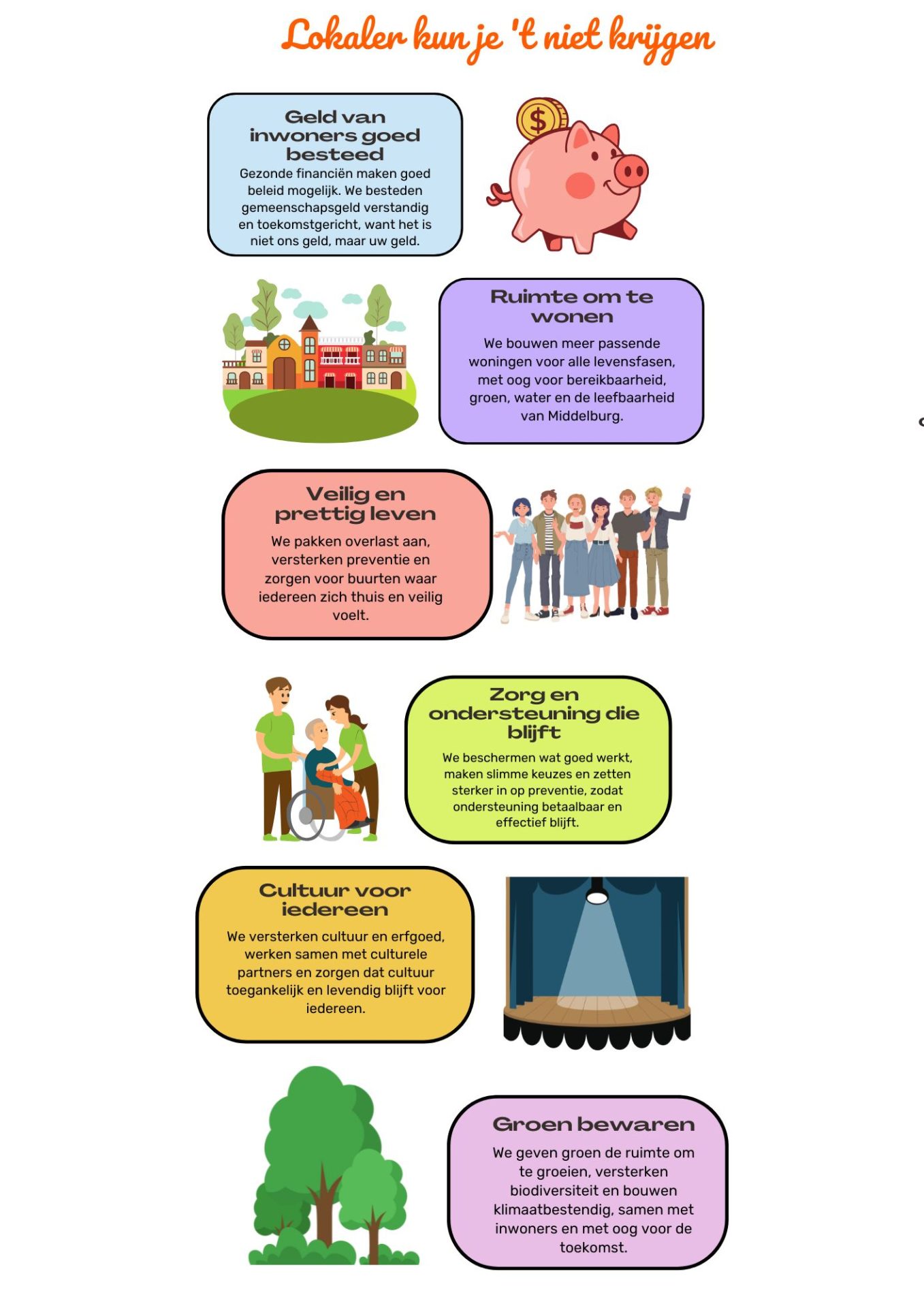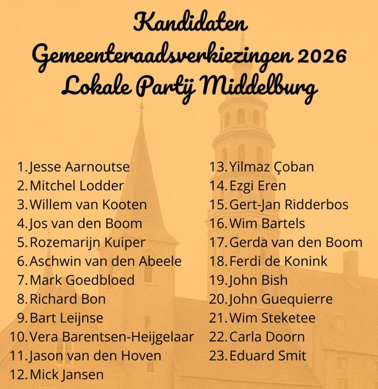 De komende 4 jaar wil ik mij graag weer inzetten om van Middelburg een gastvrije, veilige en gezellige stad te maken en te houden.
