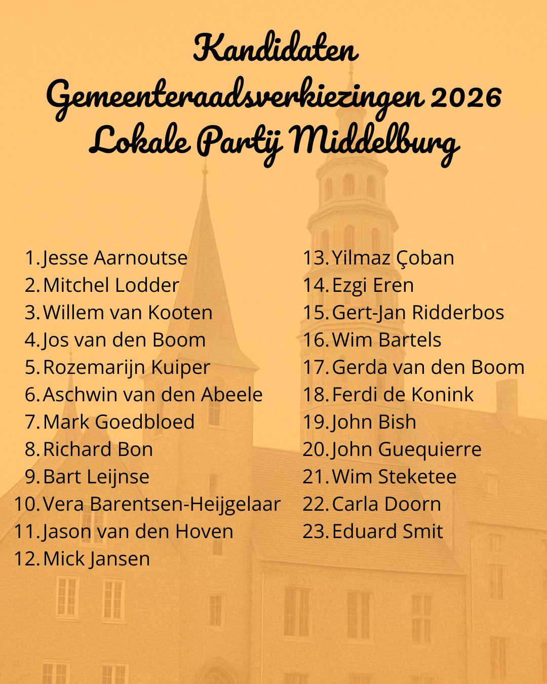 De partij zet met deze kandidaten een solide, kundig en toekomstbestendig team neer. Daarmee kan de LPM ook in de periode 2026-2030 bestuurlijke verantwoordelijkheid nemen, en effectief en vakkundig opkomen voor de belangen en ambities van de inwoners van de gemeente Middelburg.